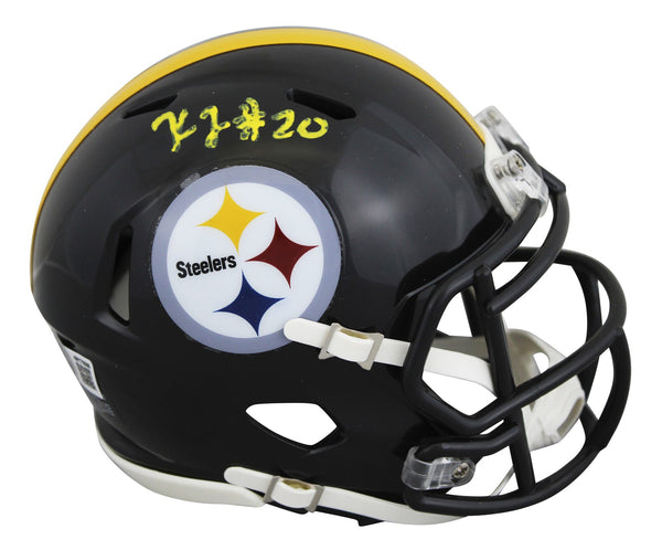 This Autographed Speed Mini Helmet has been Personally Signed by Kaleb Johnson of the Pittsburgh Steelers. This item is 100% Authentic to include a hologram by Beckett Authentication Services. This item will come with an affixed Beckett Authentication Services (BAS) authentication sticker, which includes a scannable QR code to verify authenticity. Please note that Beckett no longer provides serial-numbered COA cards, and the attached BAS sticker will serve as the complete authentication for this item. This is a BAS Witnessed Protection Program item which means a Beckett Authentication Service representative was present when this item was being signed. The authenticity can be verified on Beckett Authentication Services website.