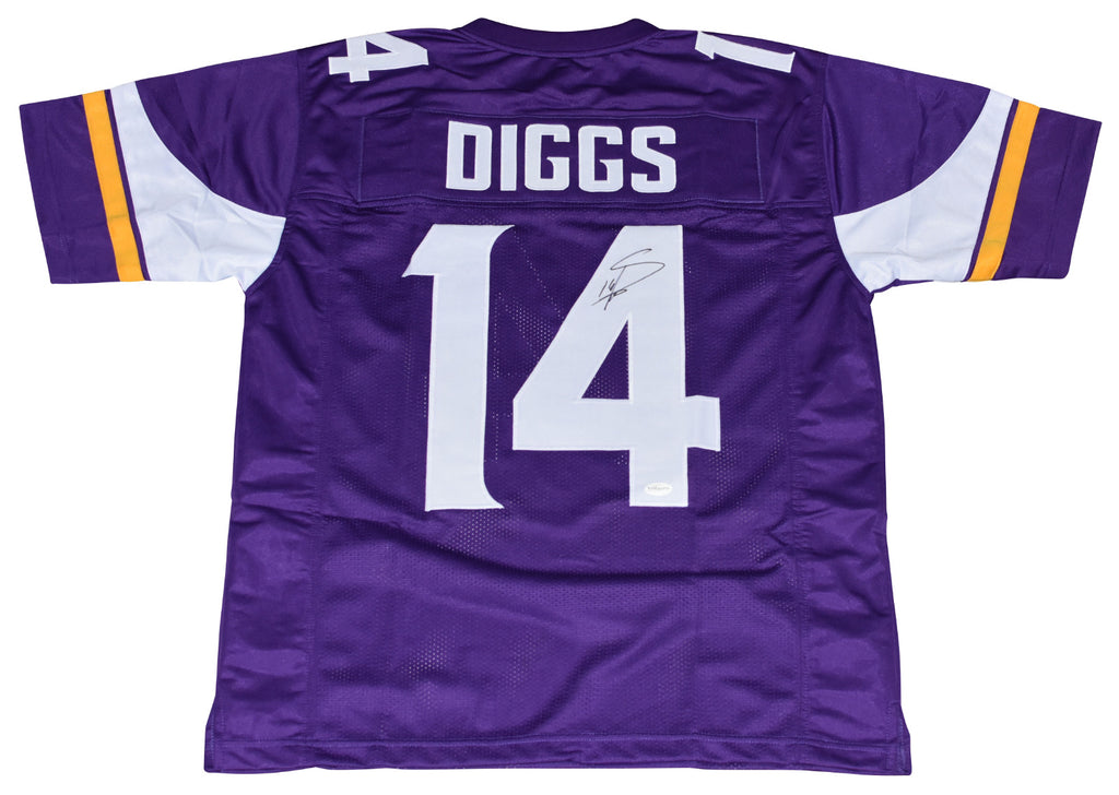 Stefon Diggs, former All-Pro wide receiver for the Minnesota Vikings, has hand signed this purple custom jersey at a private signing. Jersey is size XL and all letters/numbers are sewn-on. This item comes with a certificate of authenticity (COA) from TSE - Total Sports Enterprises, one of the leaders in the industry. You will receive a paper COA along with a TSE sticker on the jersey.Item pictured may not be the exact item you will receive. It will be similar quality, and we guarantee your satisfaction.
