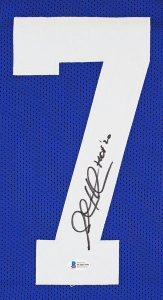 This Autographed Blue Pro Style Framed Jersey with the inscription of "HOF 2020" has been Personally Signed by Steve Hutchinson of the Seattle Seahawks. This item is 100% Authentic to include a hologram by Beckett Authentication Services. This item may come with the new Beckett Authentication hologram that has a scannable QR code rather than the traditional COA. If you would like to have a COA, you are welcome to reach out to Beckett for a printed certification once you receive your item. We conducted an autograph signing with Steve Hutchinson where multiples of the same item were signed. While the photographs are representative of this item, the size, placement and strength of the signature may vary. Each item is hand signed, therefore, each autograph is unique. This item can be verified through BAS. This item has been professionally framed to overall dimensions of approximately 32 x 37 inches. This is a X-Large sized, non-branded, custom-stitched Framed Jersey.