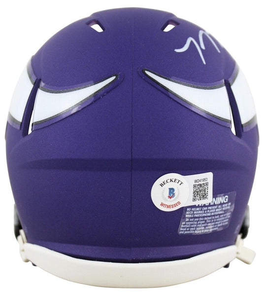Riddell Minnesota Vikings speed mini helmet. Hand-signed by T. J. Hockenson.The lot / autograph(s) includes an official Beckett Authentication Services serially numbered hologram for authenticity purposes. The signing of this item was witnessed by Beckett.Authentication: Beckett Hologram