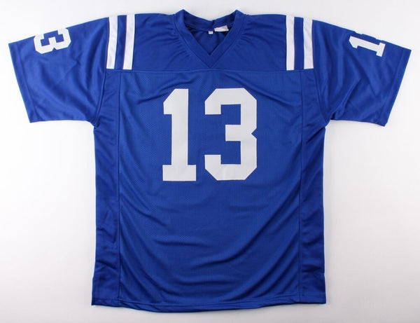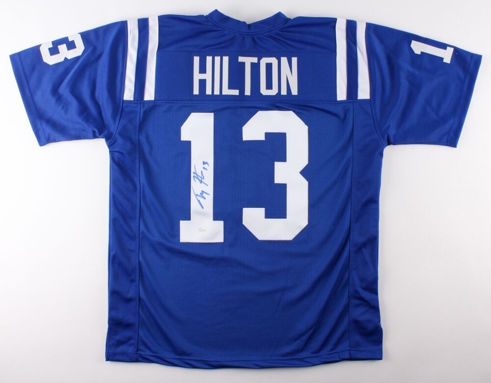 Custom on-field style jersey. Everything is sewn on, size XL. Hand-signed in blue paint pen by T. Y. Hilton. The lot / autograph(s) includes an official James Spence Authentication (JSA) hologram and matching COA for authenticity purposes. The signing of this item was witnessed by JSA.Authentication: JSA COA
