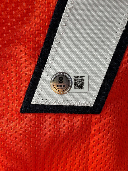 Own a Piece of NFL History This stunning custom orange Denver Broncos jersey features the authentic autograph of rising NFL star Talanoa Hufanga. A standout safety known for his explosive playmaking ability and leadership on the field, Hufanga's signature transforms this premium jersey into a must-have collectible for serious sports memorabilia enthusiasts. Authentication You Can Trust Every signature is verified and accompanied by a Beckett Certificate of Authenticity (COA), one of the most respected names in sports authentication. This ensures your investment is protected and the autograph is 100% genuine. Display-Ready Quality Crafted with meticulous attention to detail, this custom orange jersey features professional-grade stitching and vibrant team colors that make it perfect for framing and display. Whether showcased in your home office, man cave, or sports room, this piece commands attention and sparks conversation. Perfect For Dedicated NFL and Denver Broncos collectors Talanoa Hufanga fans celebrating his career Investors in authenticated sports memorabilia Unique gifts for the ultimate football enthusiast Add this exclusive autographed jersey to your collection before it's gone. With Beckett authentication and premium presentation quality, this is more than memorabilia--it's a legacy piece.