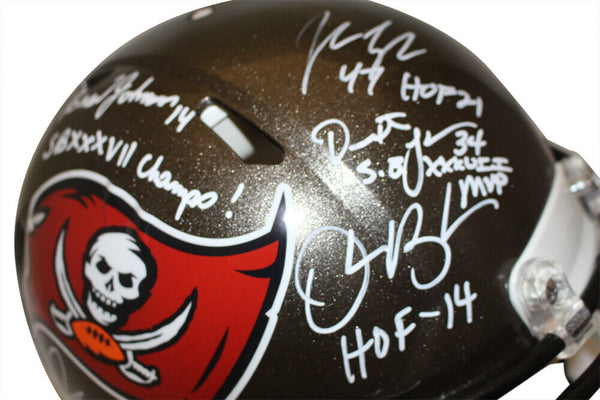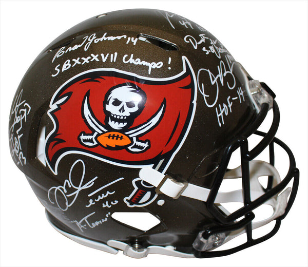 Tampa Bay Buccaneers Super Bowl XXXVII Authentic Speed Helmet BAS 34900 The number in the listing title is just an inventory sku for our records and is not the authentication number. The item pictured is a stock photo unless otherwise noted. This is a Tampa Bay Buccaneers full size authentic speed helmet that was personally autographed by Derrick Brooks, Brad Johnson, Dexter Jackson, Warren Sapp, Mike Alstott and John Lynch. Includes a certificate of authenticity from Beckett Authentication Services (BAS) and Denver Autographs.