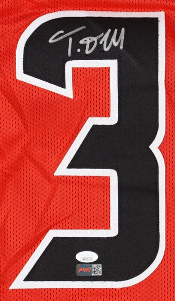 This autographed custom on-field style adult XL jersey has been personally hand-signed by Tank Dell of the Houston Texans.The autograph(s) includes an official James Spence Authentication (JSA) hologram and matching COA as well as an official Players Ink Authentication hologram for authenticity purposes. The signing of this item was witnessed by JSA.Authentication: JSA COA & PIA HologramCustom on-field style jerseys are a more affordable option for autograph seekers. These jerseys do not have any brand name or tags and are made in the Philippines. They feature stitched on names and numbers and are made to look very similar to the on-field jerseys that the players wear. These custom jerseys are very commonly used in the memorabilia industry.