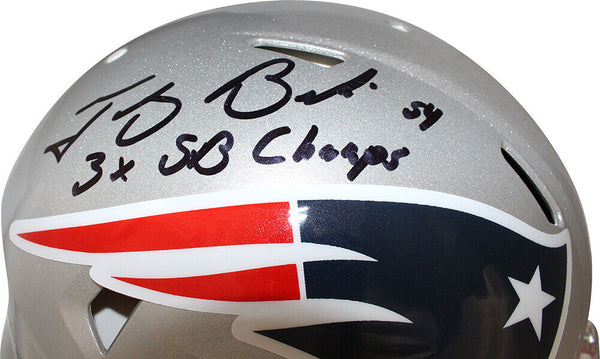 Tedy Bruschi Signed New England Patriots Authentic Helmet Insc Beckett 40853 The number in the listing title is just an inventory sku for our records and is not the authentication number. The item pictured is a stock photo unless otherwise noted. This is a New England Patriots Authentic Full Size Helmet that was personally autographed by Tedy Bruschi with "3x SB Champs" Inscription. Includes a certificate of authenticity from Beckett Authentication Services (BAS) and Denver Autographs.