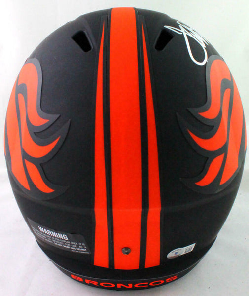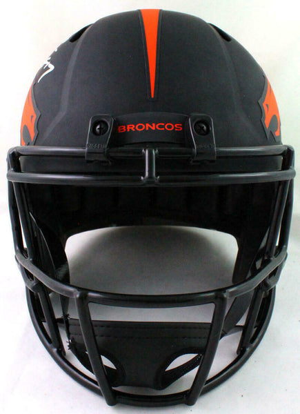 Terrell Davis Autographed Broncos Eclipse Speed Helmet w HOF- Beckett W *Silver This is a Terrell Davis of The Denver Broncos hand autographed Riddell Football Eclipse Speed full size replica helmet inscribed with "HOF". This item has a Beckett Witnessed Authentication, which comes with a numbered and a matching Certificate of Authenticity. You can view this item on the Beckett website and it shows when and where the item was signed. It was signed either at a public autograph appearance or a private signing. This is a stock photo of the item. Although you may not receive this exact item, the item you receive is virtually identical, brand new, and in great shape.