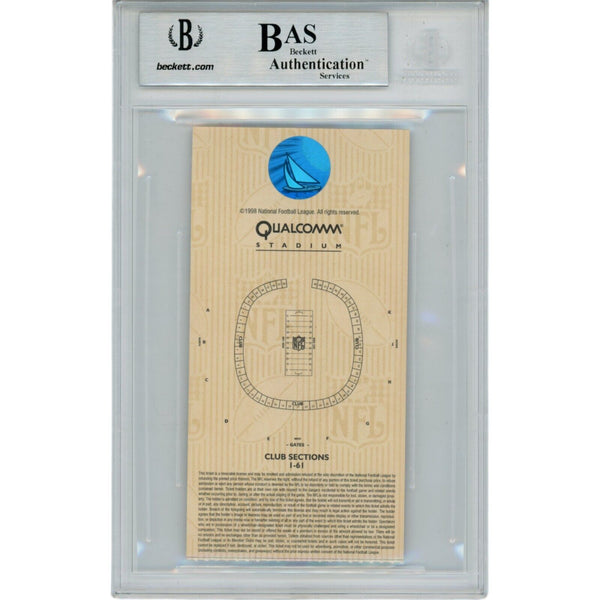 The number in the listing title is just an inventory sku for our records and is not the authentication number. The item pictured is the exact item you will receive, please see photos for condition. This is a Denver Broncos Slabbed Super Bowl XXXII Section 56 Row 16 Seat 7 Ticket Stub that was personally autographed by Terrell Davis. Includes a certificate of authenticity from Beckett Authentication Services (BAS) and Denver Autographs.FREE SHIPPING within the USA on orders over $10!