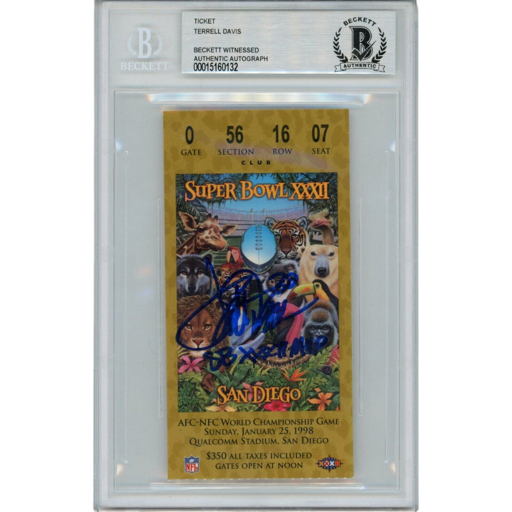 Terrell Davis Autographed Denver Broncos SB XXXII Ticket Stub Beckett 47608