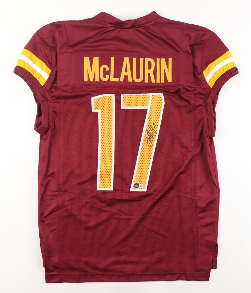 Custom on-field style jersey. Everything is sewn on, size XL. Has been hand-signed by Terry McLaurin. The lot / autograph(s) includes an official Beckett Authentication Services serially numbered hologram and QR Code card for authenticity purposes. The signing of this item was witnessed by Beckett.Authentication: Beckett Hologram & QR Code card