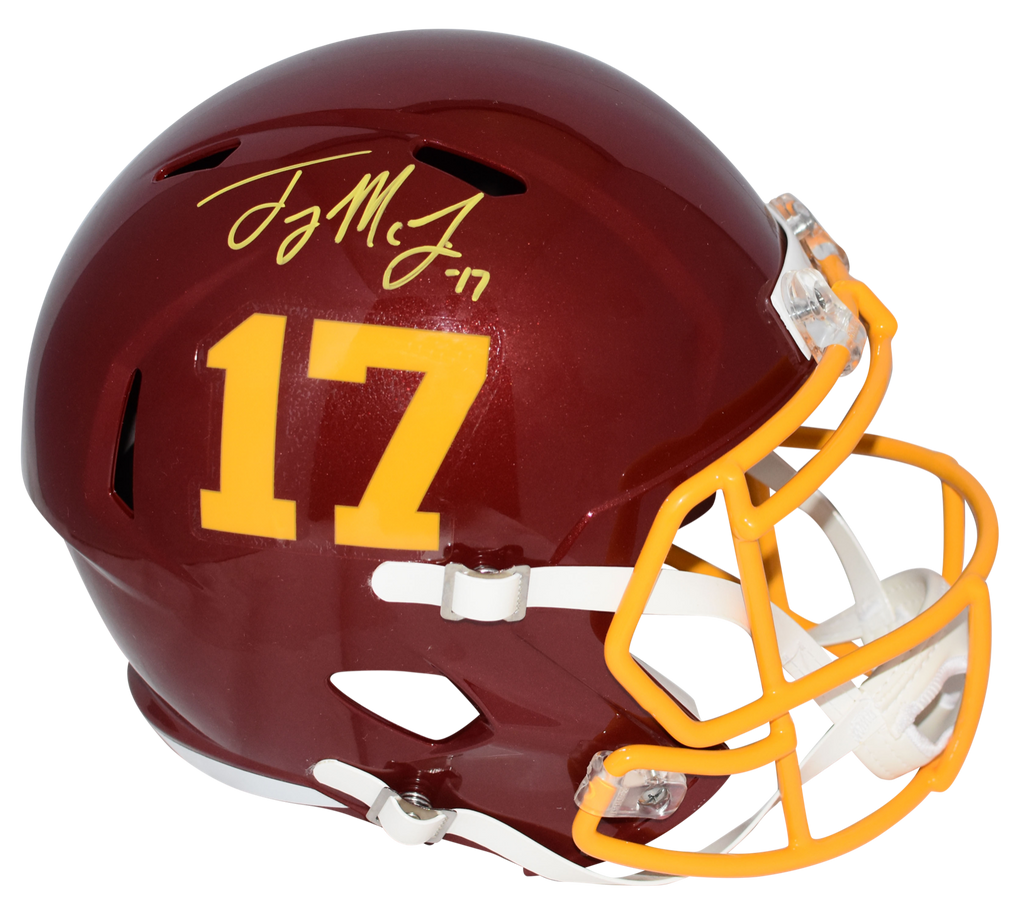 Terry McLaurin, Pro Bowl wide receiver for the Washington Commanders, has hand signed this WFT Riddell Speed full-size replica helmet at a private signing. This item is authenticated by Beckett Authentication Services, one of the best authenticators in the industry. Their tamper-evident hologram featuring a QR code and serial number is on the item. The authenticity can be verified online by entering the serial number or scanning the QR code.Item pictured may not be the exact item you will receive. It will be similar quality, and we guarantee your satisfaction.