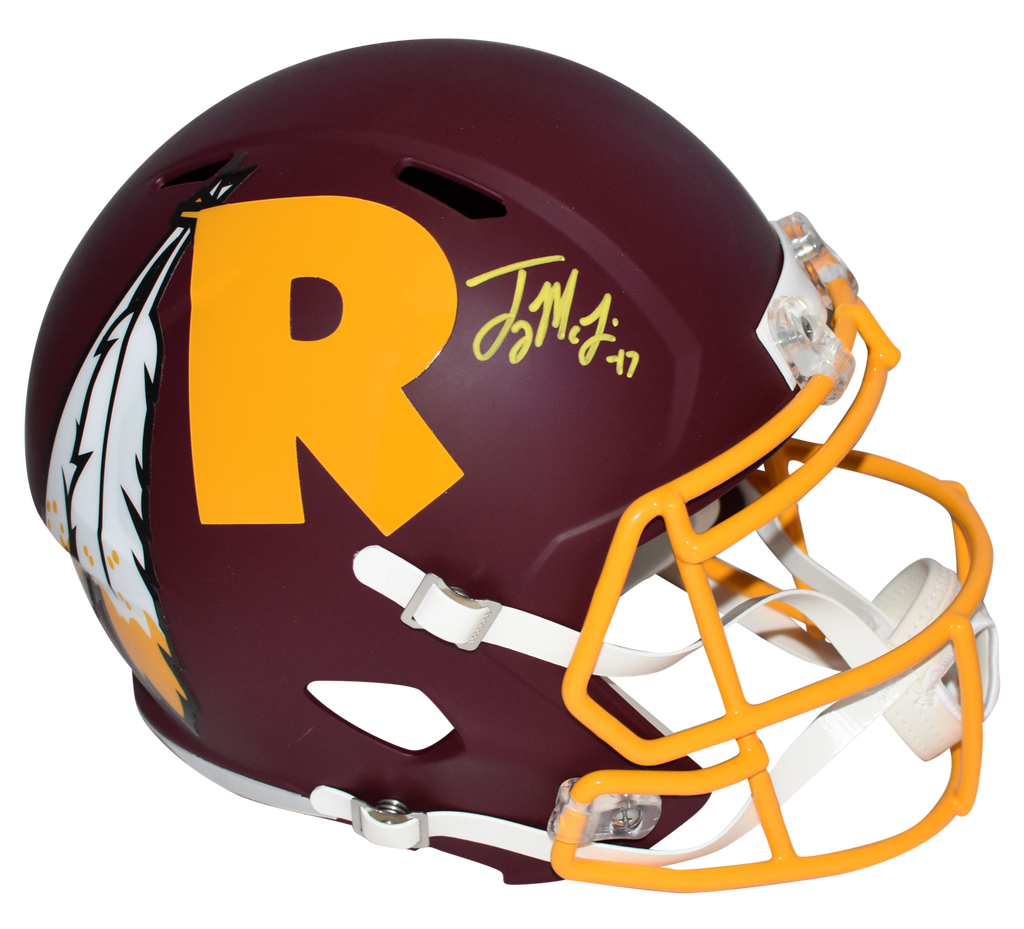 Terry McLaurin, star wide receiver for the Washington Commanders, has hand signed this Redskins Riddell Speed AMP full-size replica helmet at a private signing. This item is authenticated by Beckett Authentication Services, one of the best authenticators in the industry. Their tamper-evident hologram featuring a QR code and serial number is on the item. The authenticity can be verified online by entering the serial number or scanning the QR code.Item pictured may not be the exact item you will receive. It will be similar quality, and we guarantee your satisfaction.
