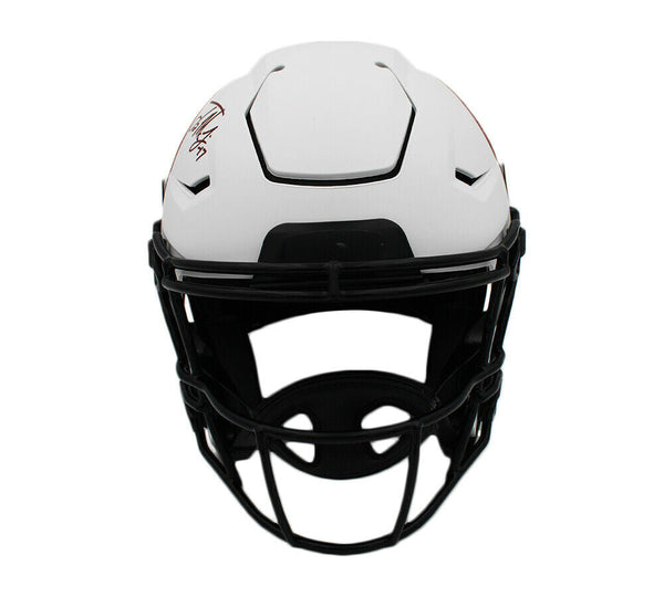An Washington Football Team Speed Flex Authentic Lunar NFL Helmet hand signed by Terry McLaurin. The item and signature are in excellent condition. Terry was drafted into the NFL in 2019 Round:3,Pick:76. Terry was a PFWA All-Rookie Team (2019). Terry is Indiana Mr. Football Award (2013).AUTHENTICATION: The item is accompanied by a Beckett Certificate of Authenticity - Beckett Serial Numbered and Databased Hologram