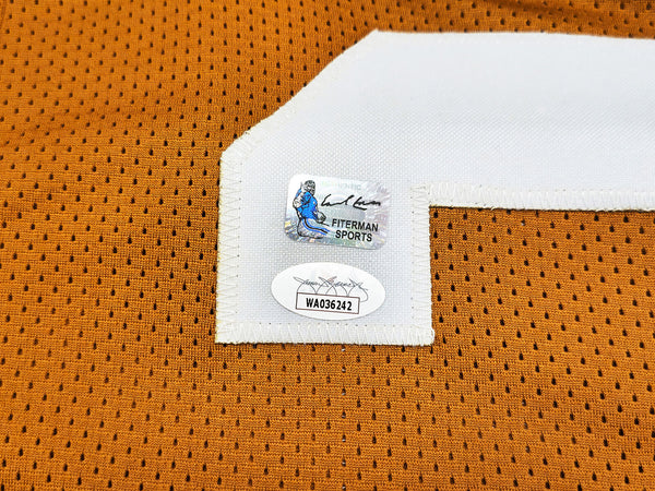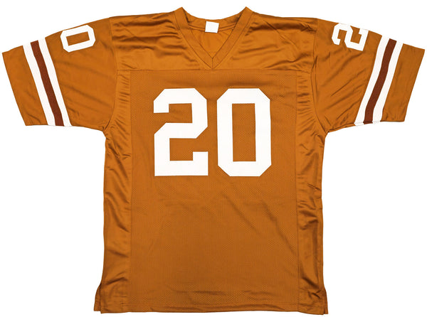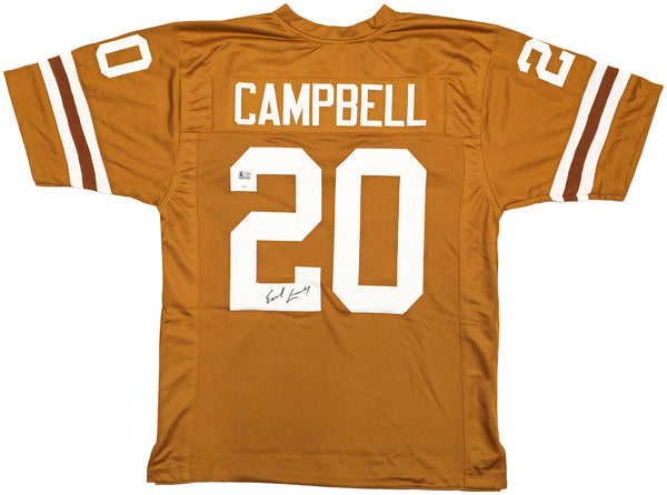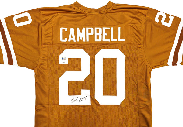 This is an Orange Jersey that has been hand signed by Earl Campbell. This is a custom jersey with no name brand. The approximate size is XL. It has nice sewn in name and numbers. This item has been certified authentic by JSA and comes with their tamper-proof sticker and matching certificate of authenticity.