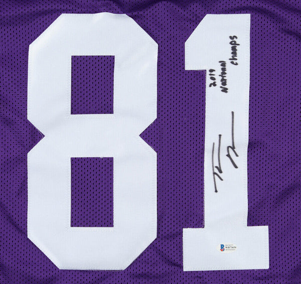 Custom on-field style jersey. Everything is sewn on, size XL. Hand-signed by Thaddeus Moss. He is the son of NFL Hall of Fame Receiver Randy Moss. The lot / autograph(s) includes an official Beckett Authentication Services serially numbered hologram and matching COA for authenticity purposes. Authentication: Beckett COA