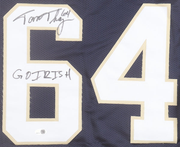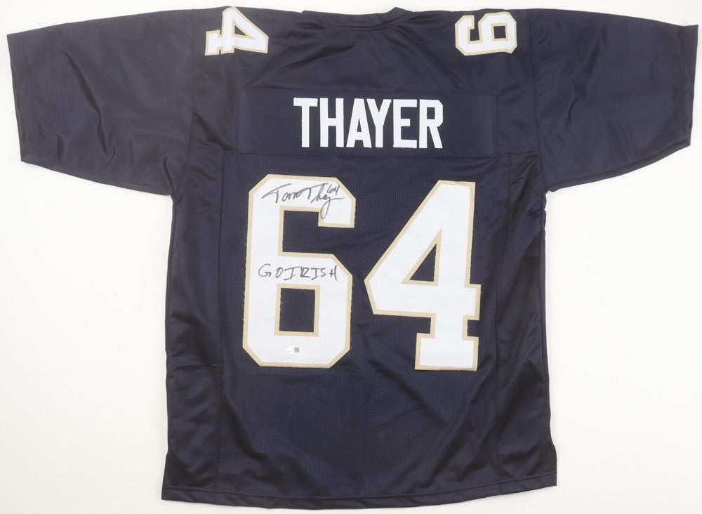 Custom on-field style jersey. Everything is sewn on, size XL. Hand-signed and inscribed by Tom Thayer.The autograph(s) includes an official James Spence Authentication (JSA) hologram and QR Code card for authenticity purposes.Authentication: JSA Hologram with QR Code card