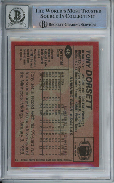 Tony Dorsett Autographed 1983 Topps #46 Trading Card Beckett 10 Slab 38646