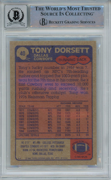 Tony Dorsett Autographed 1985 Topps #40 Trading Card Beckett 10 Slab 39280