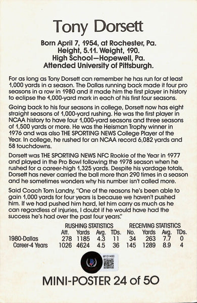 Tony Dorsett Signed Dallas Cowboys '81 Marketcom Poster Beckett 40981 The number in the listing title is just an inventory sku for our records and is not the authentication number. The item pictured is a stock photo unless otherwise noted. This is a Dallas Cowboys 1981 Marketcom Poster that was personally autographed by Tony Dorsett. Includes a certificate of authenticity from Beckett Authentication Services (BAS) and Denver Autographs.