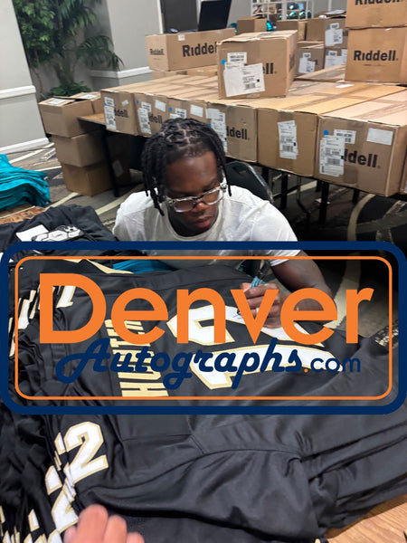 The number in the listing title is just an inventory sku for our records and is not the authentication number. The item pictured is a stock photo unless otherwise noted. This is a College Style Black size XL Jersey with sewn on numbers that was personally autographed by Travis Hunter. Includes a certificate of authenticity from Beckett Authentication Services (BAS) and Denver Autographs.FREE SHIPPING within the USA on orders over $10!