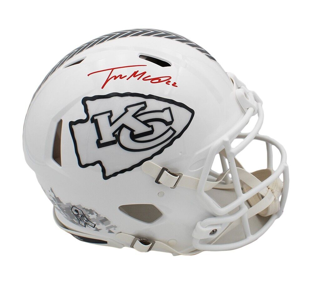 A Kansas City Chiefs Speed Authentic Salute to Service 3 NFL Helmet hand signed by Trent McDuffie. The item and signature are in excellent condition. Trent is a football cornerback. He played for the Washington Huskies in College and was drafted into the NFL in 2022 by the Kansas City Chiefs and already has 2 Super Bowls Championships in his early career. AUTHENTICATION: The item has been tagged with a SmarTag powered by Prova Technology, which gives you digital access to the items authentication records, including a proof picture from the signing.