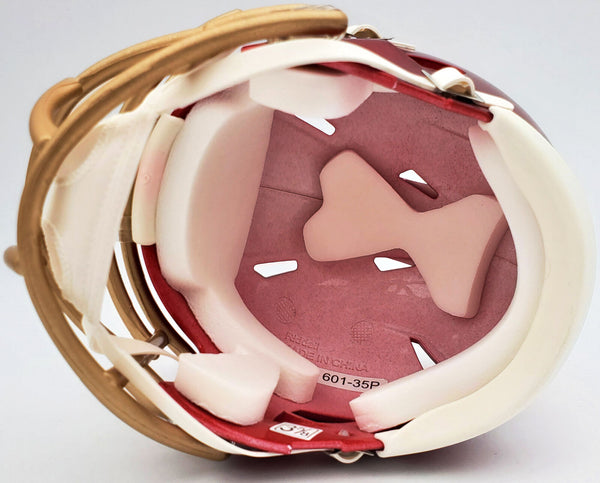 This is a San Francisco 49ers Flash Red Speed Mini Helmet that has been hand signed by Trey Lance. The Flash helmets are very delicate and often have some marks or scratches on them. This item has been certified authentic by Beckett Authentication (BAS) and comes with their tamper-proof QR Code sticker that can be verified on the Beckett-authentication.com.