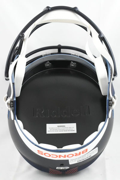 This is a Troy Franklin of the Denver Broncos autographed Riddell football full size Speed Replica helmet. This item has a Beckett Witnessed Authentication, which comes with a numbered hologram and a QR code for verification. You can view this item on the Beckett Authentication website, and it shows when and where the item was signed. It was signed either at a public autograph appearance or a private signing. This is a stock photo of the item. Although you may not receive this exact item, the item you receive is virtually identical, brand new, and in great shape. *Autograph location may vary* This is a Troy Franklin of the Denver Broncos autographed Riddell football full size Speed Replica helmet. This item has a Beckett Witnessed Authentication, which comes with a numbered hologram and a QR code for verification. You can view this item on the Beckett Authentication website, and it shows when and where the item was signed. It was signed either at a public autograph appearance or a private signing. This is a stock photo of the item. Although you may not receive this exact item, the item you receive is virtually identical, brand new, and in great shape. *Autograph location may vary*