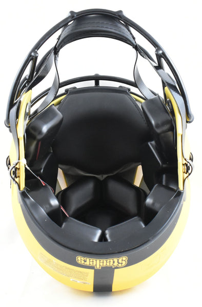 This is a Troy Polamalu of the Pittsburgh Steelers Autographed Riddell football full size Rave Speed Authentic helmet. This item has a Beckett Witnessed Authentication, which comes with a numbered hologram and a QR code for verification. You can view this item on the Beckett Authentication website and it shows when and where the item was signed. It was signed either at a public autograph appearance or a private signing. This is a stock photo of the item. Although you may not receive this exact item, the item you receive is virtually identical, brand new, and in great shape. *Autograph location may vary* This is a Troy Polamalu of the Pittsburgh Steelers Autographed Riddell football full size Rave Speed Authentic helmet. This item has a Beckett Witnessed Authentication, which comes with a numbered hologram and a QR code for verification. You can view this item on the Beckett Authentication website and it shows when and where the item was signed. It was signed either at a public autograph appearance or a private signing. This is a stock photo of the item. Although you may not receive this exact item, the item you receive is virtually identical, brand new, and in great shape. *Autograph location may vary*