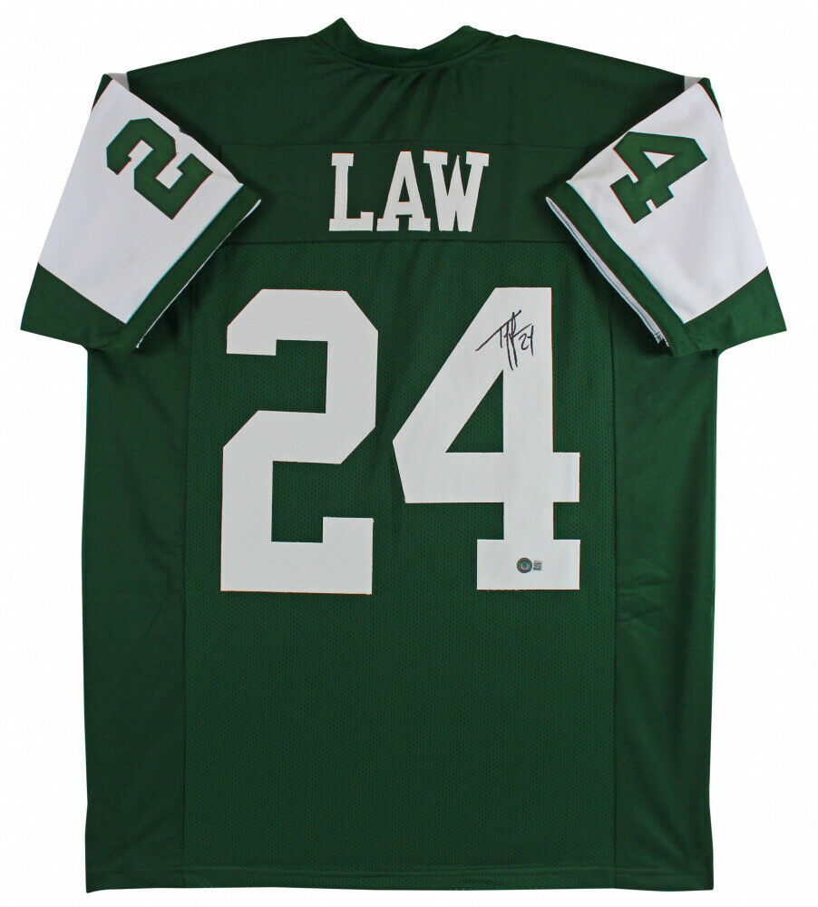 Ty Law Signed New York Jets Green Jersey (Beckett COA) 3xSuper Bowl Champion