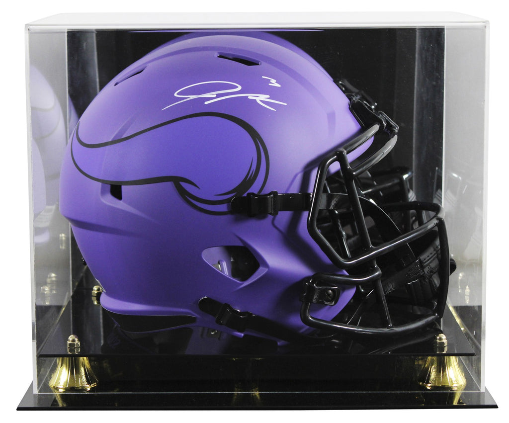 This Autographed Alternate Rave Riddell Full Size Speed Rep Helmet W/ Uv Mirrored Back Acrylic Display Case has been Personally Signed by Jordan Addison of the Minnesota Vikings. This item is 100% Authentic to include a hologram by Beckett Authentication Services. This item will come with an affixed Beckett Authentication Services (BAS) authentication sticker, which includes a scannable QR code to verify authenticity. Please note that Beckett no longer provides serial-numbered COA cards, and the attached BAS sticker will serve as the complete authentication for this item. This is a BAS Witnessed Protection Program item which means a Beckett Authentication Service representative was present when this item was being signed. We conducted an autograph signing with Jordan Addison where multiples of the same item were signed. While the photographs are representative of this item, the size, placement and strength of the signature may vary. Each item is hand signed, therefore, each autograph is unique. This item can be verified through BAS Witnessed.