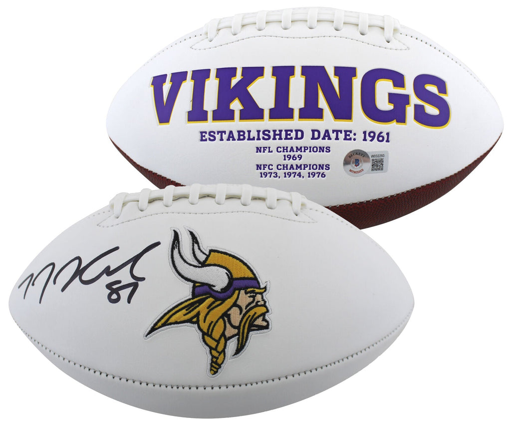This Autographed White Panel Logo Football has been Personally Signed by T.J. Hockenson of the Minnesota Vikings. This item is 100% Authentic to include a hologram by Beckett Authentication Services. This item may come with the new Beckett Authentication hologram that has a scannable QR code rather than the traditional COA. If you would like to have a COA, you are welcome to reach out to Beckett for a printed certification once you receive your item. This is a BAS Witnessed Protection Program item which means a Beckett Authentication Service representative was present when this item was being signed. We conducted an autograph signing with T.J. Hockenson where multiples of the same item were signed. While the photographs are representative of this item, the size, placement and strength of the signature may vary. Each item is hand signed, therefore, each autograph is unique. This item can be verified through BAS Witnessed.