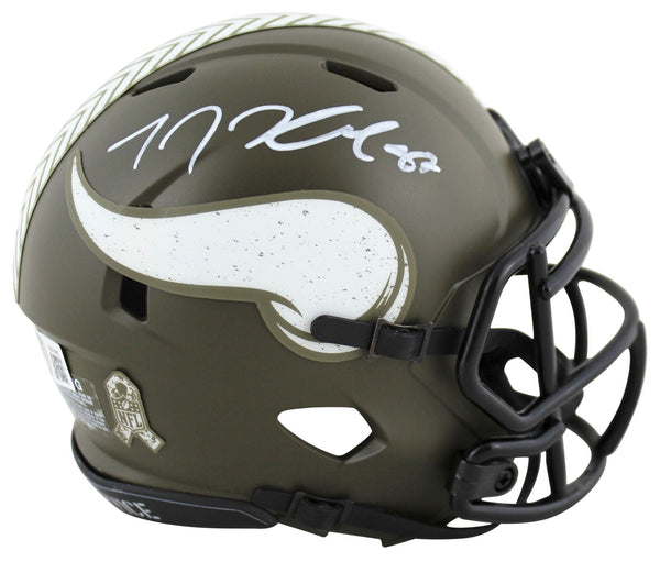 Vikings T.J. Hockenson Signed Salute To Service Speed Mini Helmet BAS Witnessed