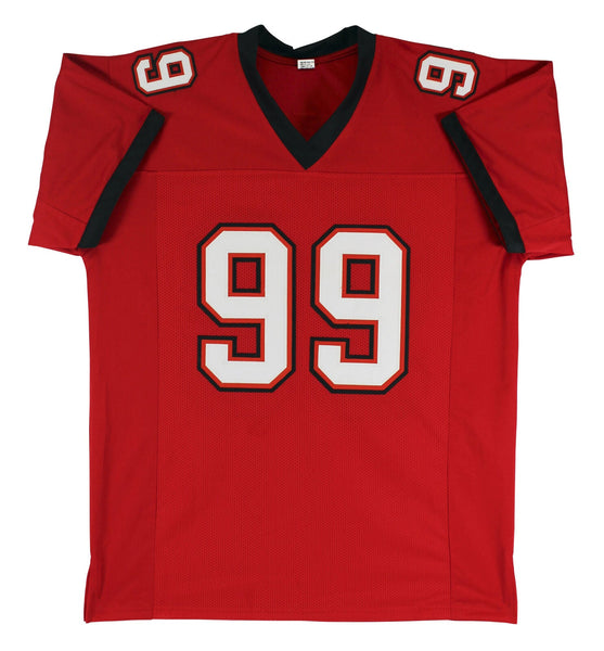 This Autographed Red Pro Style Jersey with the inscription of "HOF 13" has been Personally Signed by Warren Sapp of the Tampa Bay Buccaneers. This item is 100% Authentic to include a hologram by Beckett Authentication Services. This item may come with the new Beckett Authentication hologram that has a scannable QR code rather than the traditional COA. If you would like to have a COA, you are welcome to reach out to Beckett for a printed certification once you receive your item. This is a BAS Witnessed Protection Program item which means a Beckett Authentication Service representative was present when this item was being signed. This is a stock item. We conducted an autograph signing with Warren Sapp and we have several of these available. The one you will receive will be of equal quality to the one pictured. This item can be verified through BAS Witnessed. This is a X-Large sized, non-branded, custom-stitched Jersey.