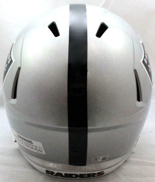 Warren Sapp Autographed Oakland Raiders Full Size Speed Helmet w/ HOF- Beckett W Hologram This is a hand autograph of Warren Sapp of the Oakland Raiders on a Riddell Football Full Size Speed Replica Helmet and inscribed with HOF 13. This item has a Becket Witnessed Authentication, which comes with a numbered hologram and a generic Beckett Certificate of Authenticity. You can view this item on the Beckett Authentication website and it shows when and where the item was signed. It was signed either at a public autograph appearance or a private signing. This is a stock photo of the item. Although you may not receive this exact item, the item you receive is virtually identical and brand new in great shape.
