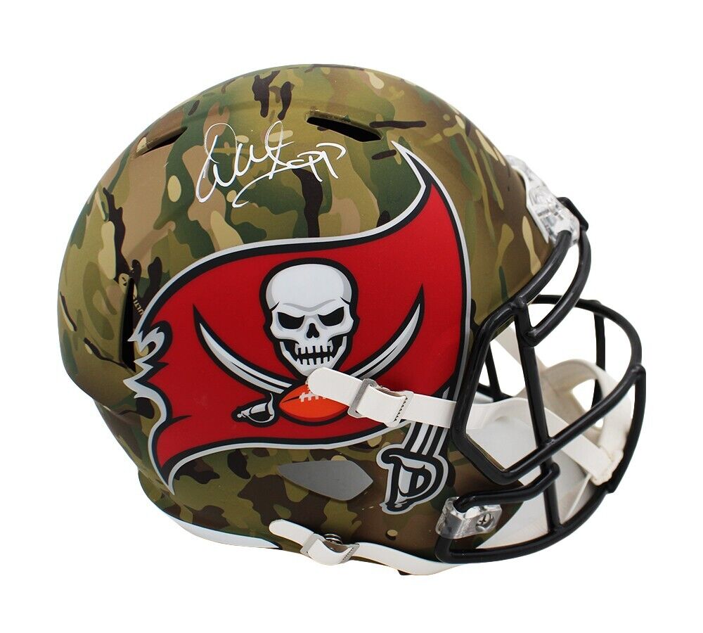 A Tampa Bay Buccaneers Speed Replica Camo NFL Helmet hand signed by Warren Sapp. The item and signature are in excellent condition. Warren is a 7X Pro Bowl Selection, 4X NFL First Team All-Pro, Super Bowl XXXVII Champion, 1999 NFL Defensive Player of the Year, and Class of 2013 HOF Inductee. AUTHENTICATION: The item is accompanied by a Schwartz Sports Certificate of Authenticity - Schwartz Sports Serial Numbered and Database Hologram