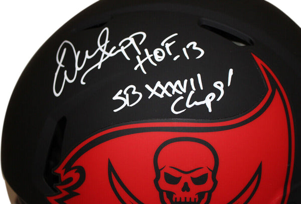 Warren Sapp Signed Tampa Bay Bucs Eclipse Authentic Helmet w/insc BAS 40046 The number in the listing title is just an inventory sku for our records and is not the authentication number. The item pictured is a stock photo unless otherwise noted. This is a Tampa Bay Buccaneers eclipse authentic helmet that was personally autographed by Warren Sapp with inscriptions XXXVII SB Champs and HOF. Includes a certificate of authenticity from Beckett Authentication Services (BAS) and Denver Autographs.
