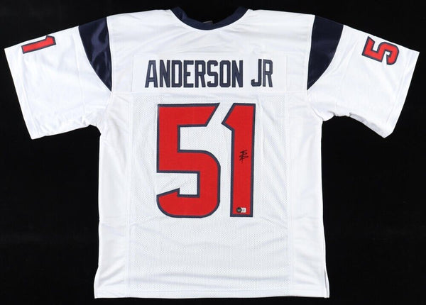 Custom jersey. Everything is sewn on, size XL. Hand-signed by Will Anderson Jr.The autograph(s) includes an official Beckett hologram and QR Code card for authenticity purposes. The signing of this item was witnessed by BeckettAuthentication: Beckett Hologram & QR Code card
