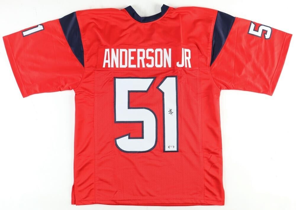 Custom jersey. Everything is sewn on, size XL. Hand-signed by Will Anderson Jr.The autograph(s) includes an official PSA/DNA hologram and matching COA for authenticity purposes. The signing of this item was witnessed by PSA.Authentication: PSA COA