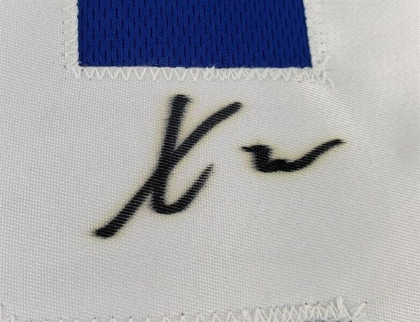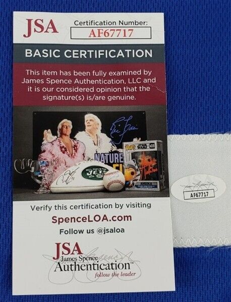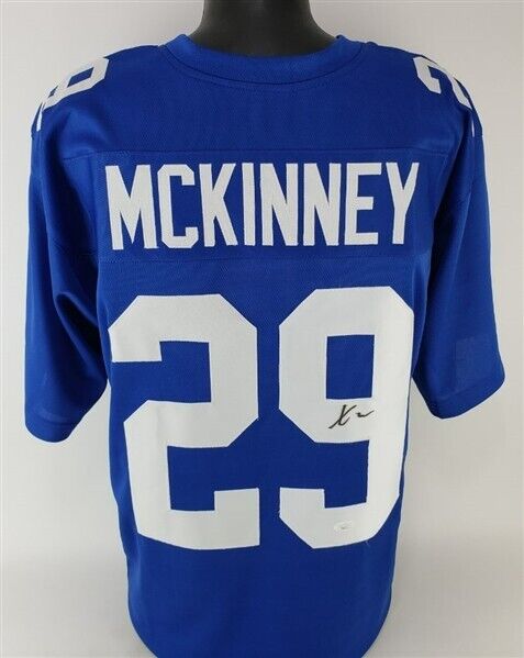 This autographed jersey has been personally hand-signed by Xavier McKinney of the New York Giants. This autograph is certified by James Spence Authentication (JSA). It comes with the numbered hologram and matching Certificate of Authenticity.Custom on-field style jerseys are a more affordable option for autograph seekers. These jerseys do not have any brand name or tags and are made in the Philippines. They feature stitched on names and numbers and are made to look very similar to the on-field jerseys that the players wear. These custom jerseys are very commonly used in the memorabilia industry.