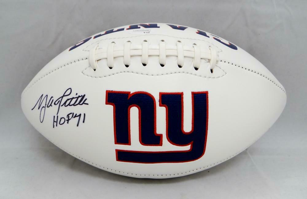 This is a hand autographed football of Y. A. Tittle. This is a New York Giants Logo football. This item has a James Spence Witness Protection Authentication, which comes with a JSA numbered sticker and a matching JSA COA. You can view this item on the SpenceLOA website, it shows when and where the item was signed. It was signed either at a public autograph appearance or a Private Signing. This is a stock photo of the item. Although you may not receive this exact item, the item you receive is virtually identical and brand new in great shape. This is a hand autographed football of Y. A. Tittle. This is a New York Giants Logo football. This item has a James Spence Witness Protection Authentication, which comes with a JSA numbered sticker and a matching JSA COA. You can view this item on the SpenceLOA website, it shows when and where the item was signed. It was signed either at a public autograph appearance or a Private Signing. This is a stock photo of the item. Although you may not receive this exact item, the item you receive is virtually identical and brand new in great shape.