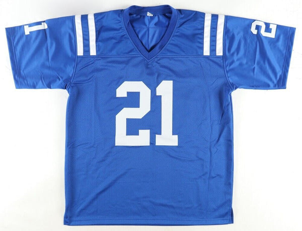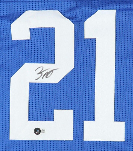 Custom on-field style jersey. Everything sewn on, size XL. Hand-signed in black felt-tip pen by Zack Moss. The lot / autograph(s) includes an official Beckett Authentication Services serially-numbered hologram for authenticity purposes. The signing of this item was witnessed by Beckett.Authentication: Beckett HologramCustom on-field style jerseys are a more affordable option for autograph seekers. These jerseys do not have any brand name or tags and are made in the Philippines. They feature stitched on names and numbers and are made to look very similar to the on-field jerseys that the players wear. These custom jerseys are very commonly used in the memorabilia industry.