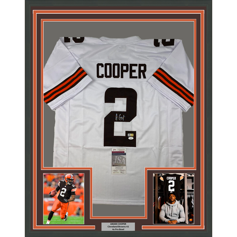 Framed Autographed/Signed Amari Cooper 33x42 Cleveland White Jersey JSA COA