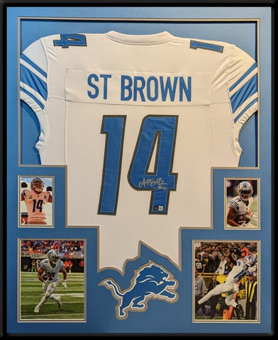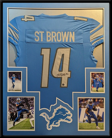 FRAMED DETROIT LIONS AMON-RA ST BROWN AUTOGRAPHED SIGNED JERSEY BECKETT HOLO