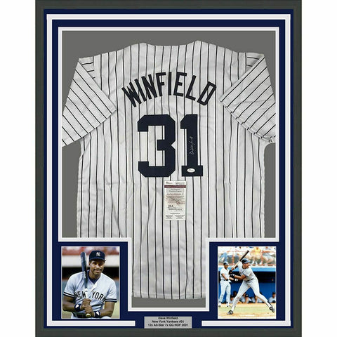 FRAMED Autographed/Signed DAVE WINFIELD 33x42 New York Pinstripe Jersey JSA COA