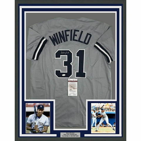 FRAMED Autographed/Signed DAVE WINFIELD 33x42 New York Grey Jersey JSA COA Auto