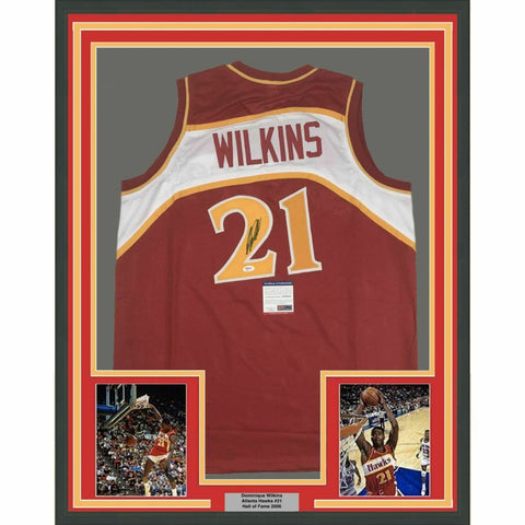 FRAMED SIGNED AUTOGRAPHED DOMINIQUE WILKINS ATLANTA HAWKS JERSEY JSA COA