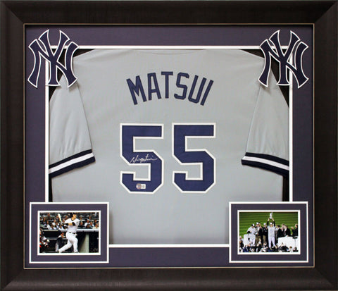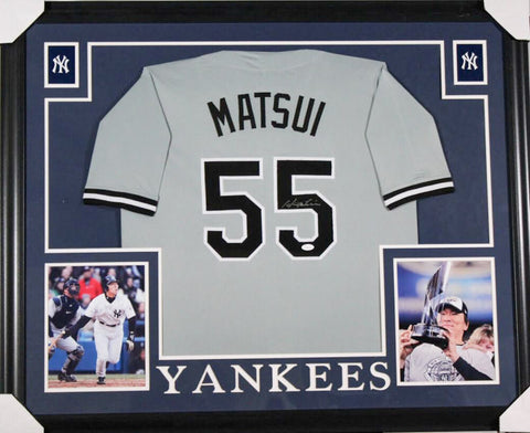 Hideki Matsui Signed New York Yankees 35"x 43" Custom Framed Jersey (JSA COA)