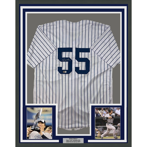 Framed Autographed/Signed Hideki Matsui 33x42 Pinstripe Baseball Jersey BAS COA
