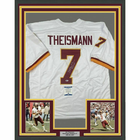 FRAMED Autographed/Signed JOE THEISMANN 33x42 83 MVP White Jersey BAS COA