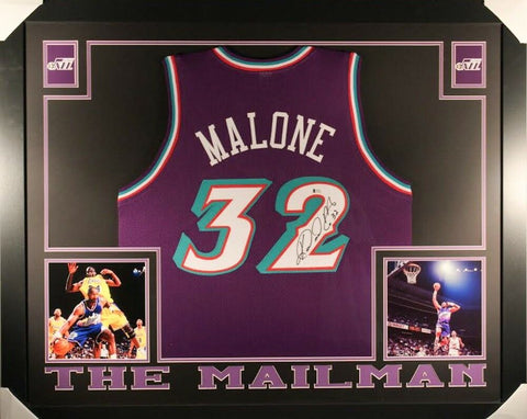 Karl Malone Autographed Signed Framed Utah Jazz Jersey PSA/DNA