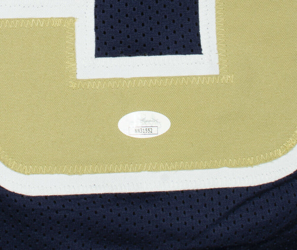 Featured is an Aaron Donald signed framed custom blue pro style football jersey. This jersey was hand signed by Aaron Donald and authenticated by JSA authentication services. Included with the jersey is a JSA hologram and certificate of authentication. This jersey would make a great addition to any sports memorabilia collection! SPECIFICATIONS Autographed By: Aaron Donald Team: Los Angeles Rams Sport: Football Authentication: James Spence Authentication (JSA)